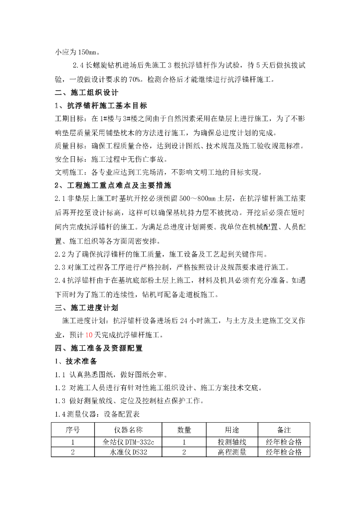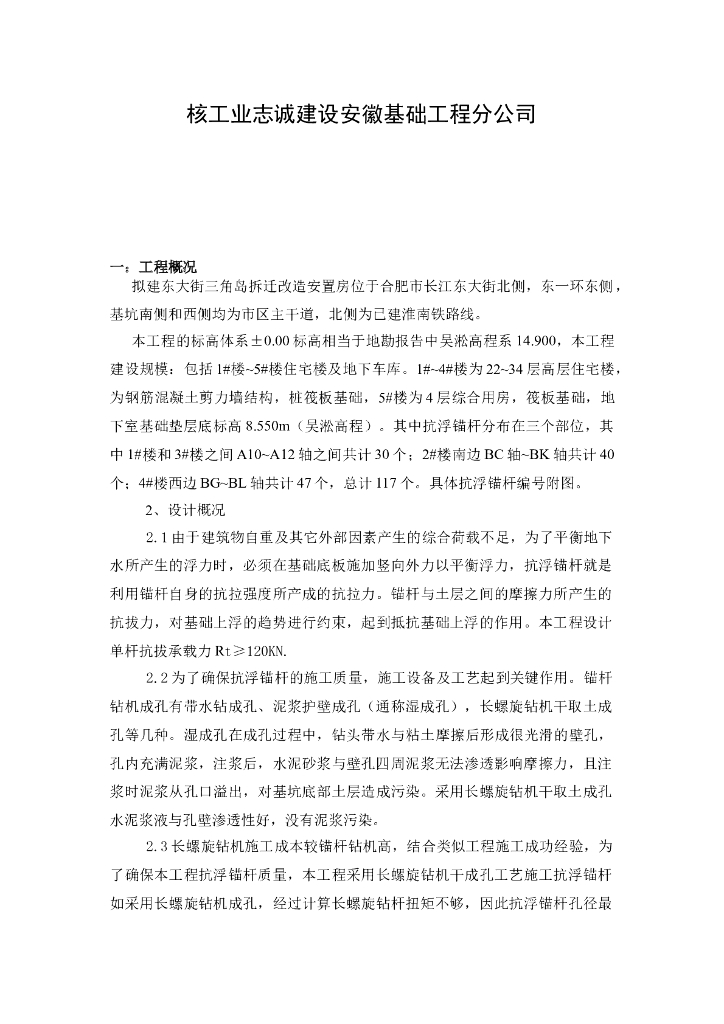 广州地下车库抗浮锚杆工程施工方案(17页).doc