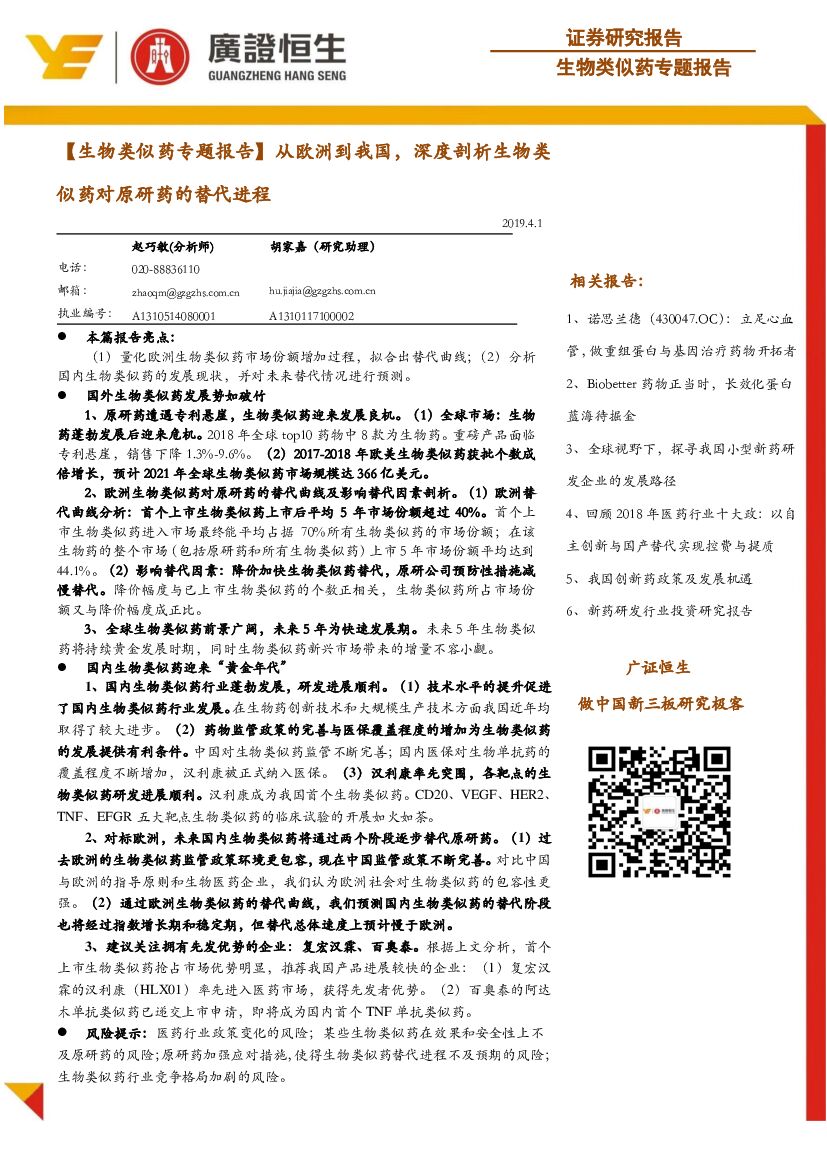 广证恒生证券研究所:【生物类似药专题报告】从欧洲到我国,深度剖析生物类似药对原研药的替代进程.pdf