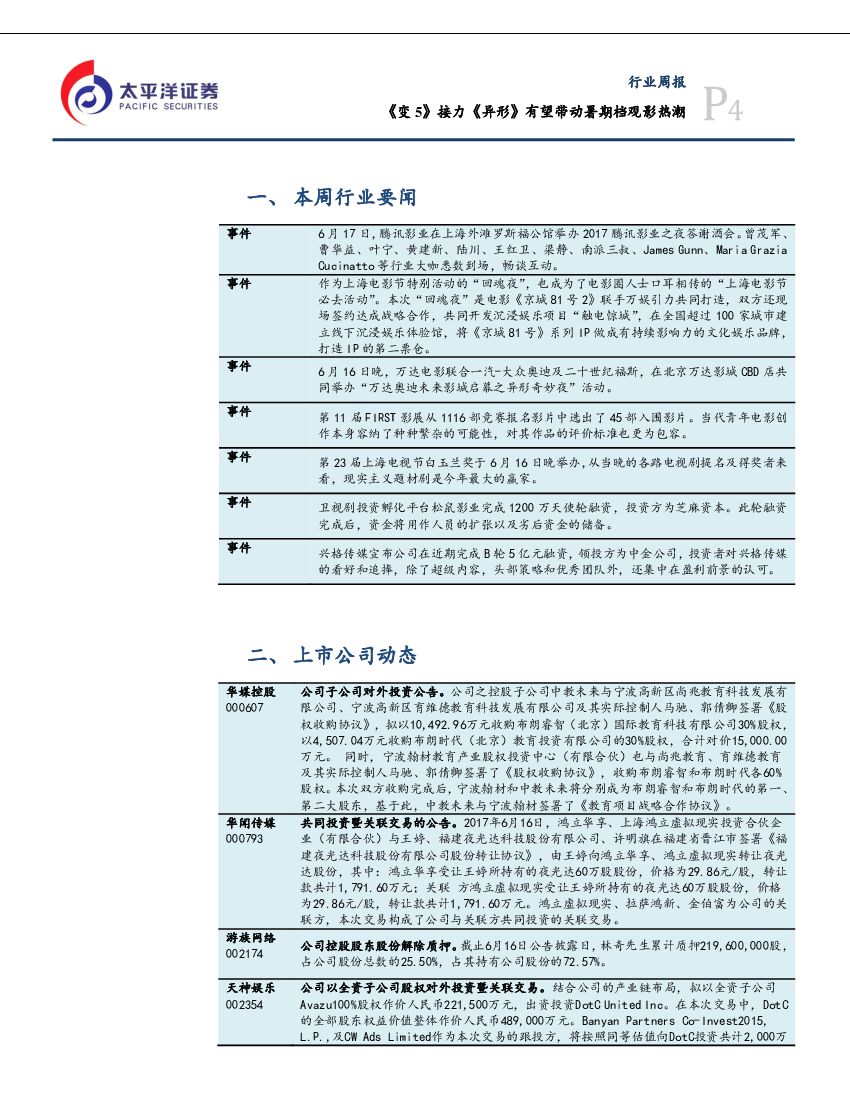 太平洋证券:文化传媒行业周报:《变5》接力《异形》有望带动暑期档观影热潮.pdf