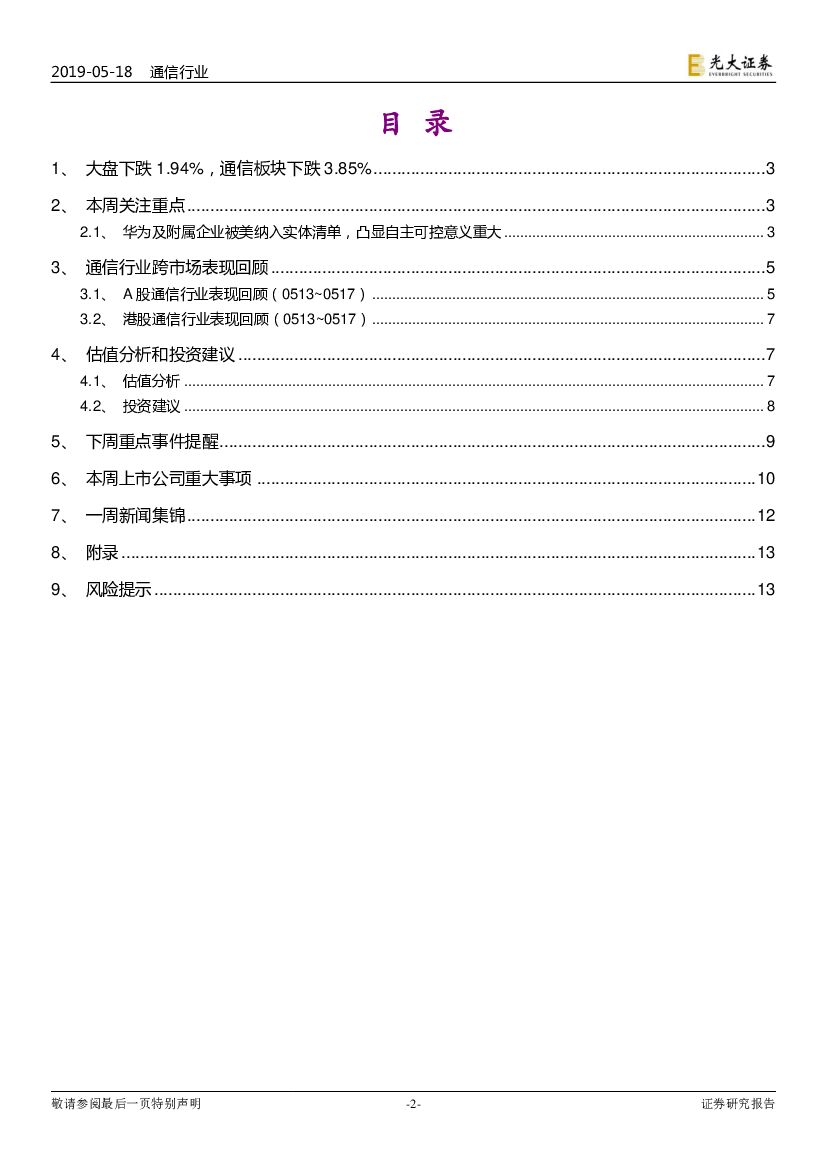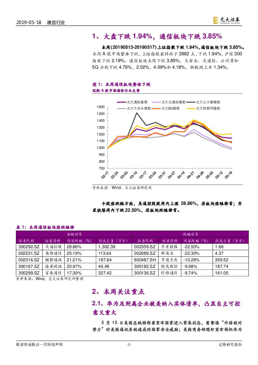 光大证券:通信行业周报(第71期):华为及附属企业被美纳入实体名单,凸显自主可控意义重大.pdf