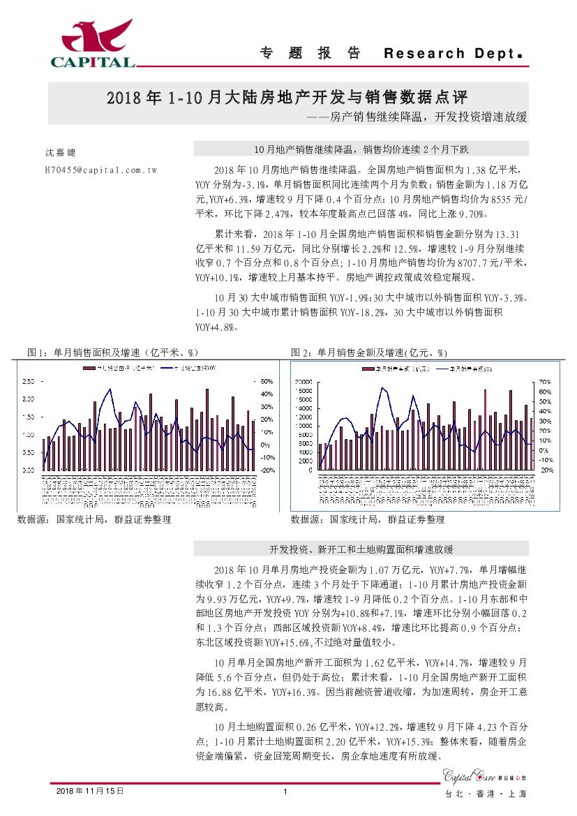 群益证券:2018年1-10月大陆房地产开发与销售数据点评:房产销售继续降温,开发投资增速放缓.pdf