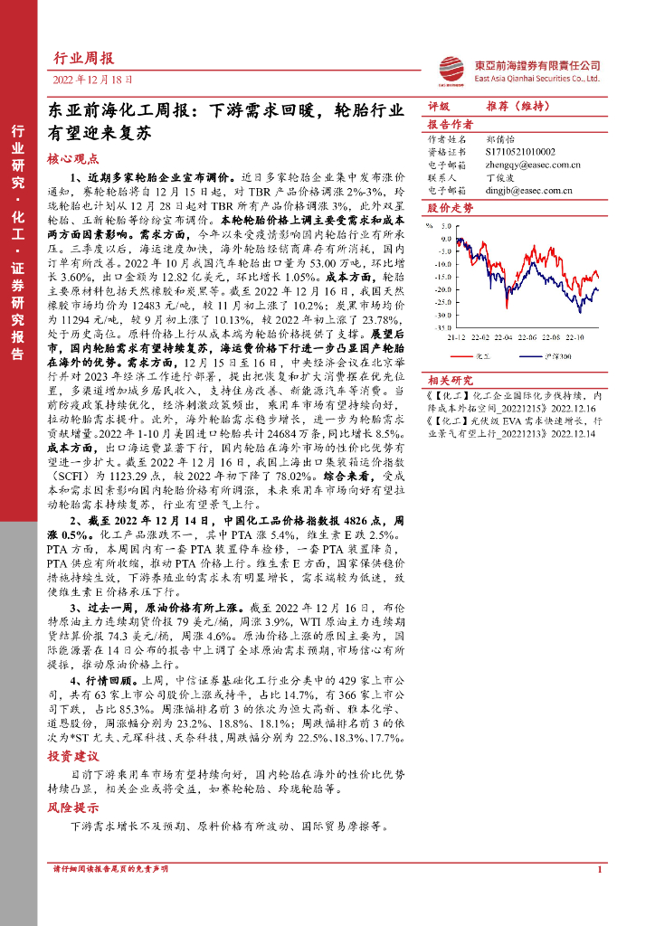 东亚前海证券:化工周报:下游需求回暖,轮胎行业有望迎来复苏.pdf