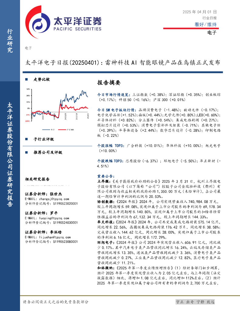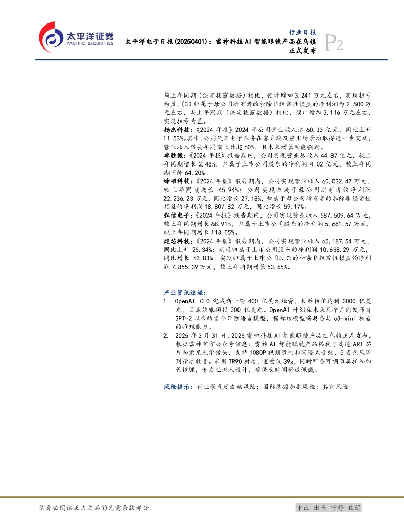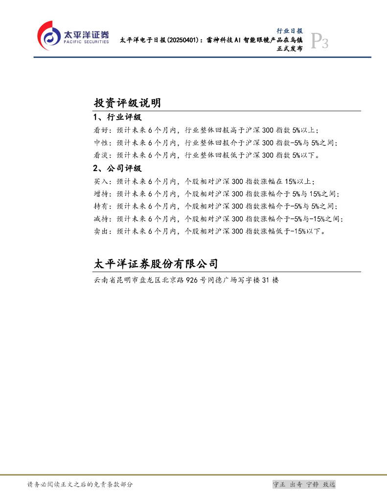 太平洋证券:电子日报:雷神科技AI智能眼镜产品在乌镇正式发布.pdf