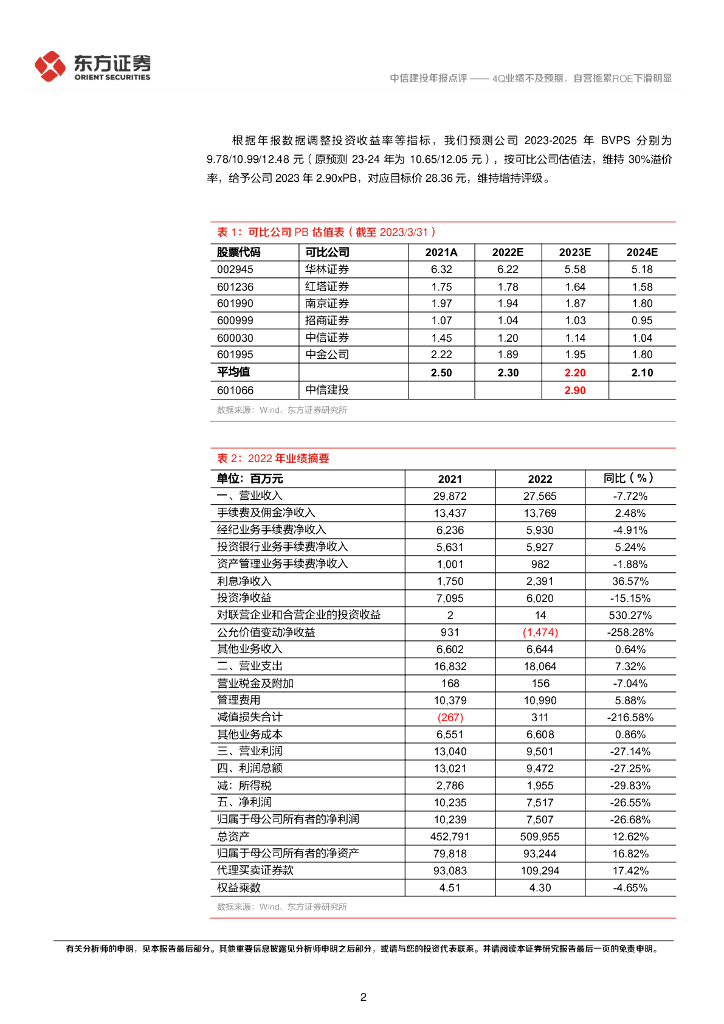 东方证券:中信建投2022年业绩点评:4Q业绩不及预期,自营拖累ROE下滑明显.pdf