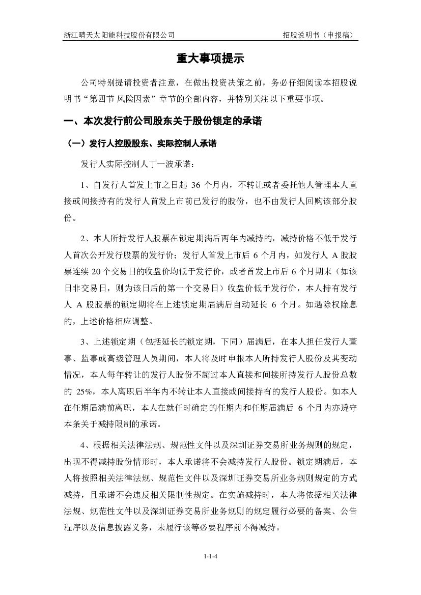浙江晴天太阳能科技股份有限公司深市主板IPO上市招股说明书.pdf