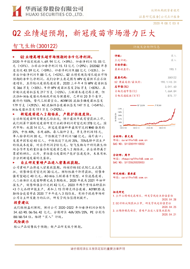 华西证券:智飞生物(300122)-Q2业绩超预期,新冠疫苗市场潜力巨大.pdf
