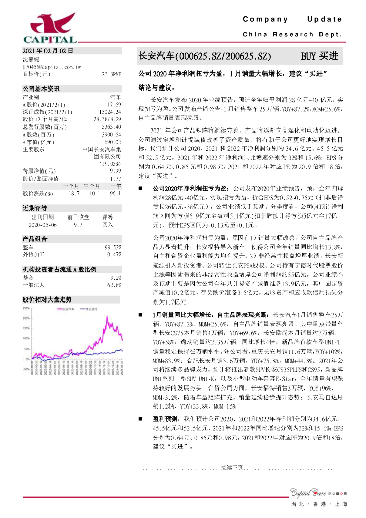 群益证券:长安汽车(000625)-公司2020年净利润扭亏为盈,1月销量大幅增长,建议“买进”.pdf