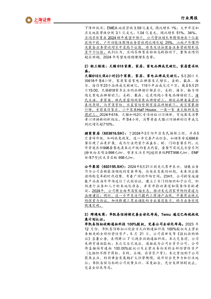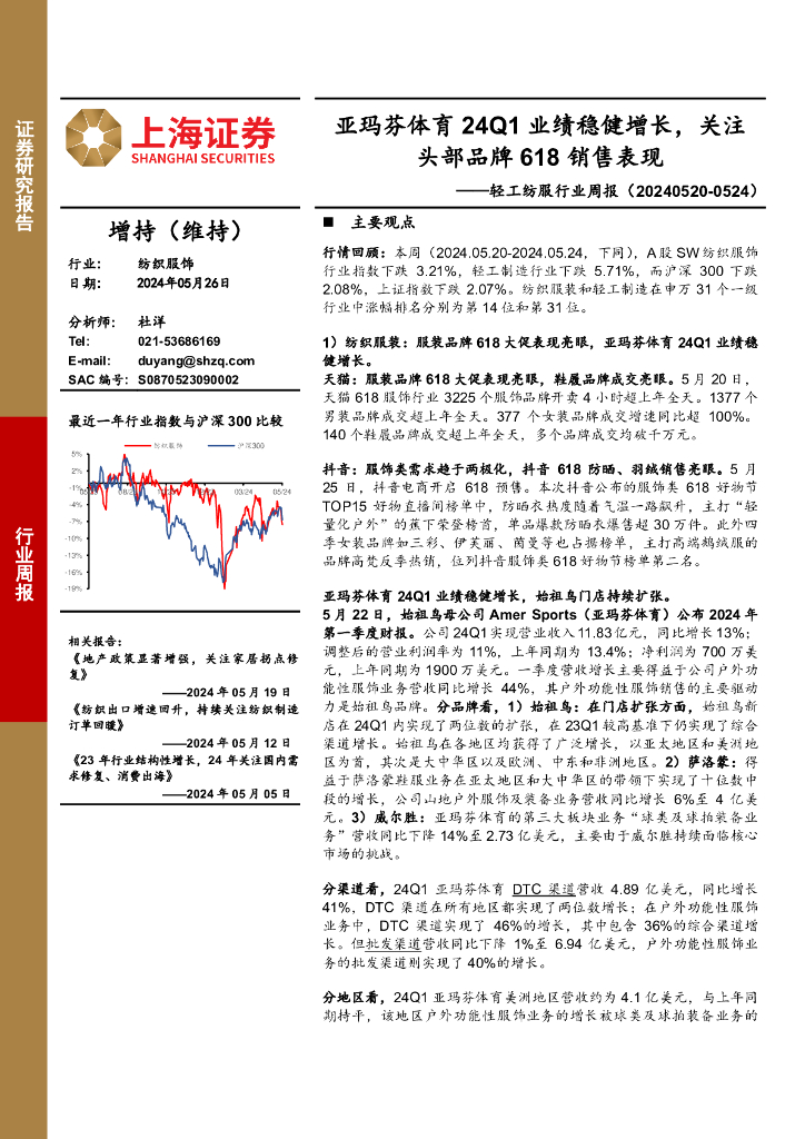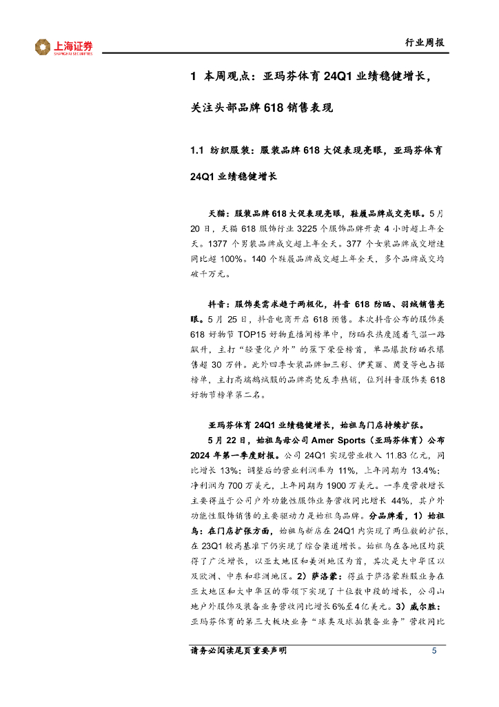 上海证券:纺织服饰行业周报:亚玛芬体育24Q1业绩稳健增长,关注头部品牌618销售表现.pdf