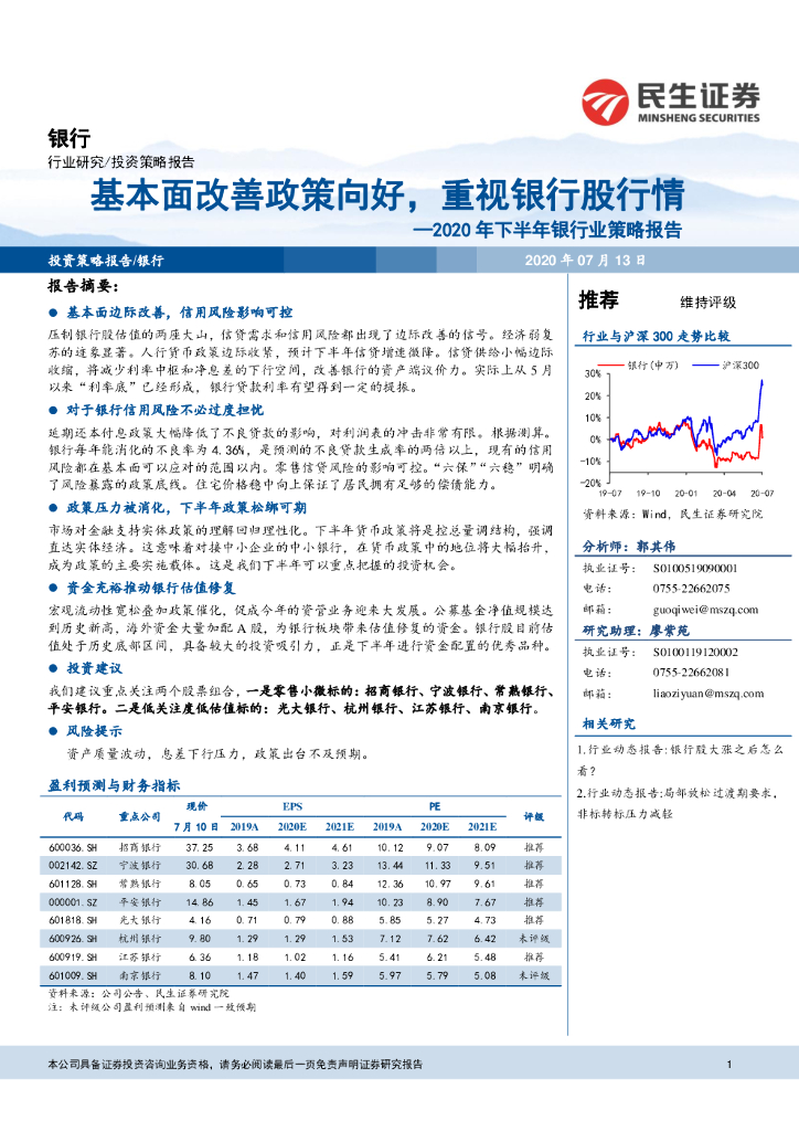 民生证券:2020年下半年银行业策略报告:基本面改善政策向好,重视银行股行情.pdf