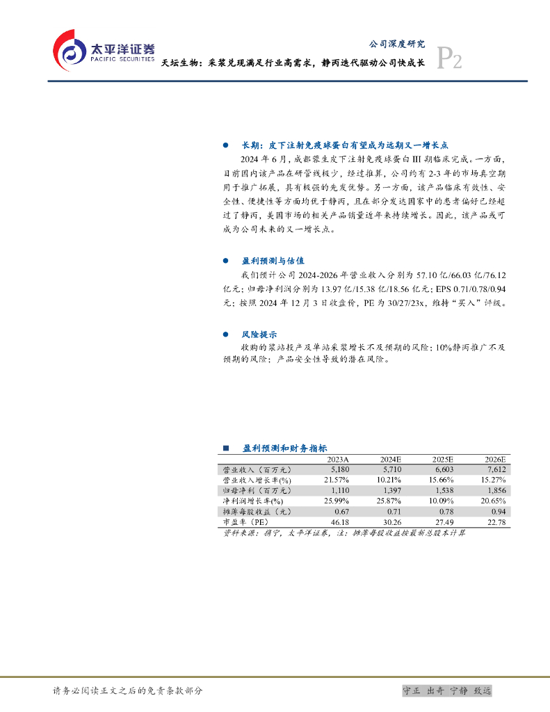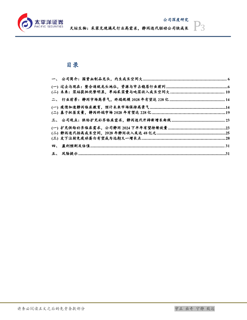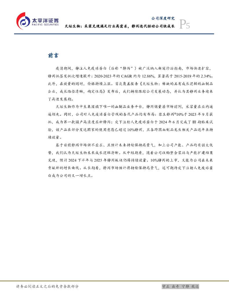 太平洋证券:天坛生物:采浆兑现满足行业高需求,静丙迭代驱动公司快成长.pdf