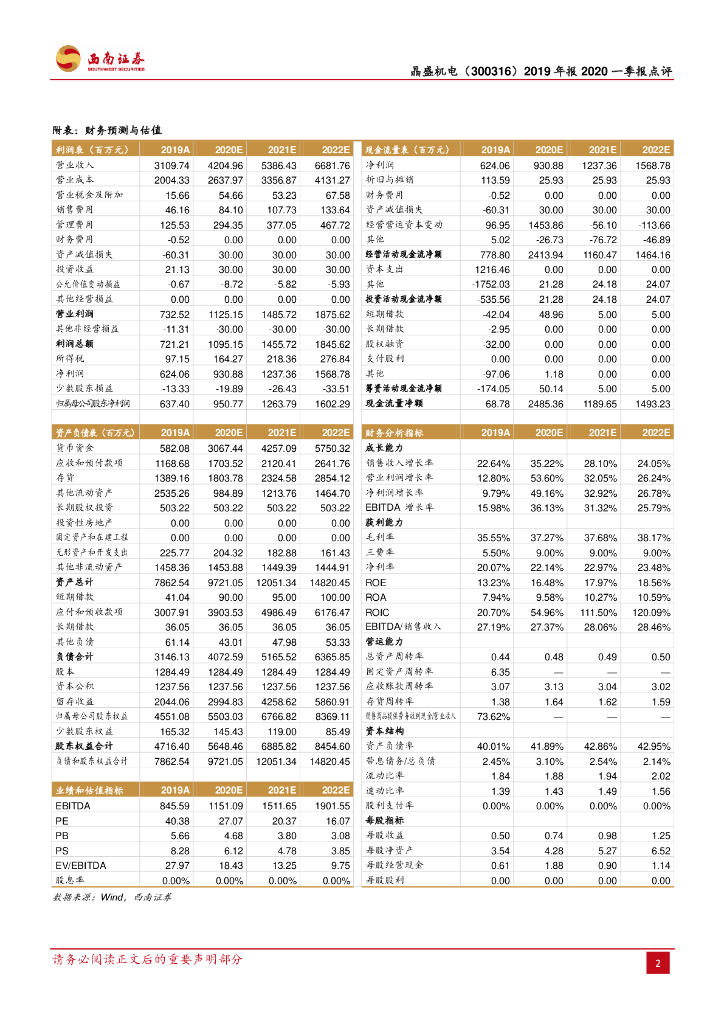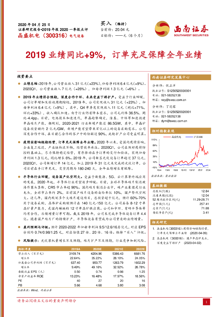 西南证券:晶盛机电(300316)-2019业绩同比+9%,订单充足保障全年业绩.pdf