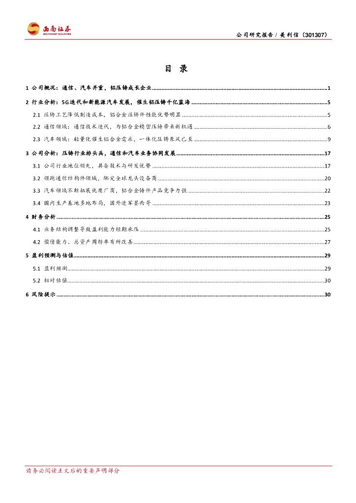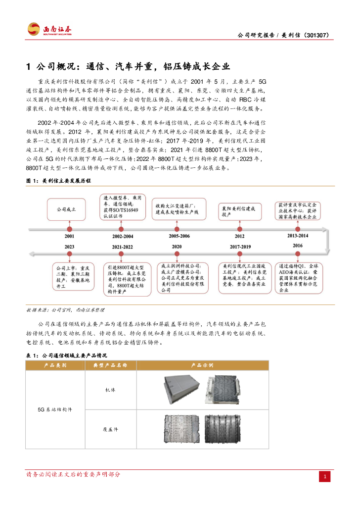 西南证券:美利信(301307)-精密压铸厚积薄发,通信和汽车业务齐头并进.pdf