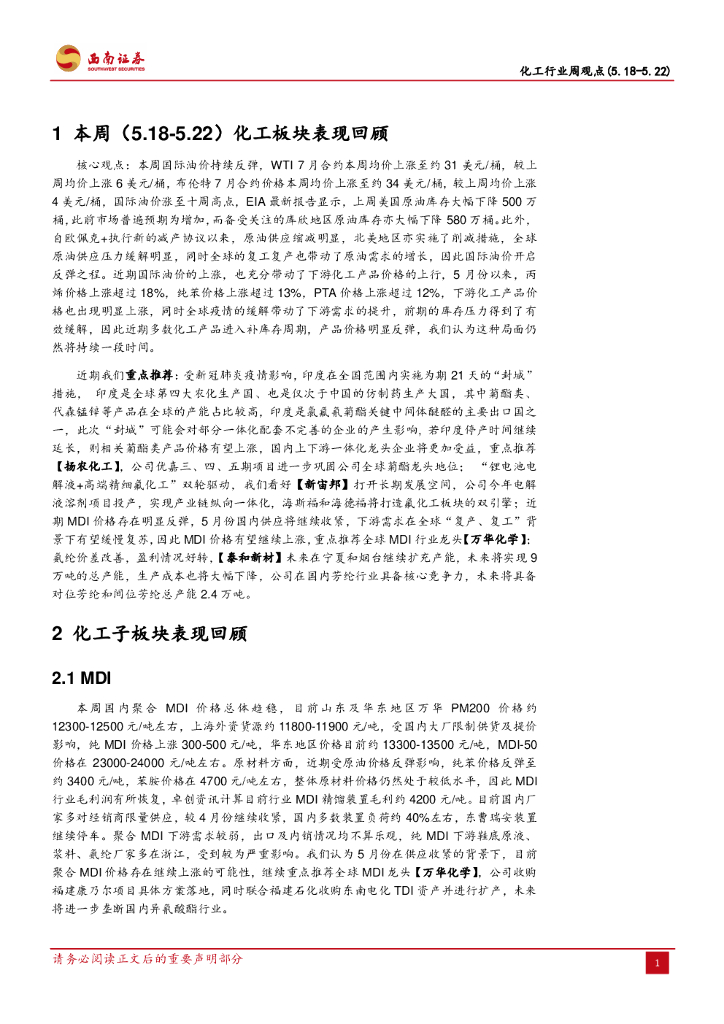 西南证券:化工行业周观点:原油上涨叠加下游补库存,化工产品价格迎来普涨.pdf