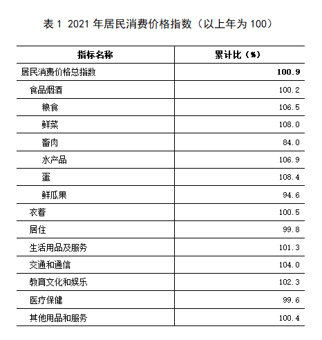 物价总体涨势温和。居民消费价格总指数(CPI)累计比上年上涨0.9%。其中,食品烟酒价格上涨0.2%,衣着价格上涨0.5%,生活用品及服务价格上涨1.3%,交通和通信价格上涨4.0%,教育文化娱乐价格上涨2.3%,其他用品及服务价格上涨0.4%,医疗保健价格下降0.4%,居住价格下降0.2%。