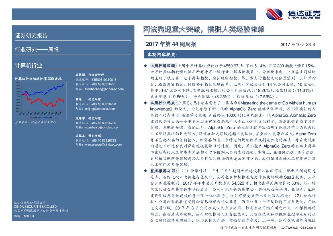 信达证券:计算机行业2017年第44周周报:阿法狗迎重大突破,摆脱人类经验依赖.pdf