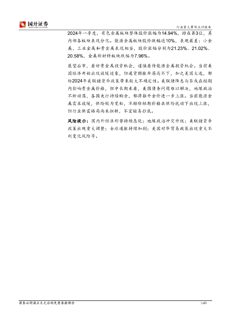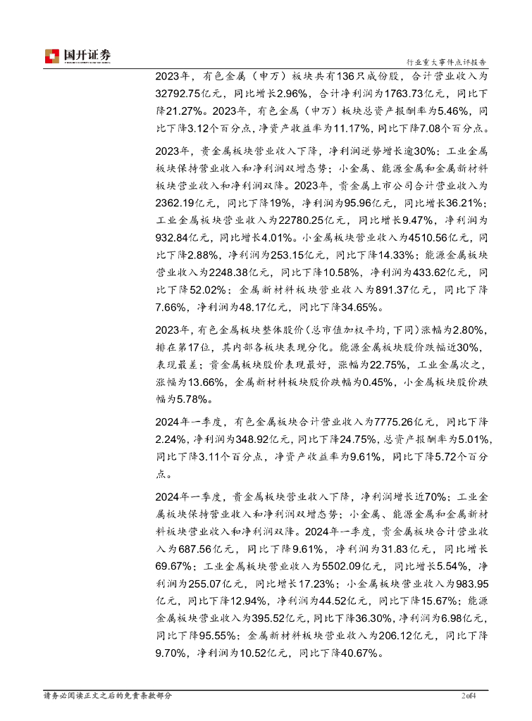国开证券:有色金属行业2023年和2024年一季度点评:工业金属和贵金属业绩较好能源金属业绩股价双杀.pdf