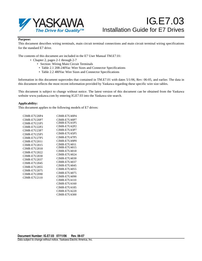 YASKAWA IG.E7.03 Installation Guide for E7 Drives 数据手册.pdf
