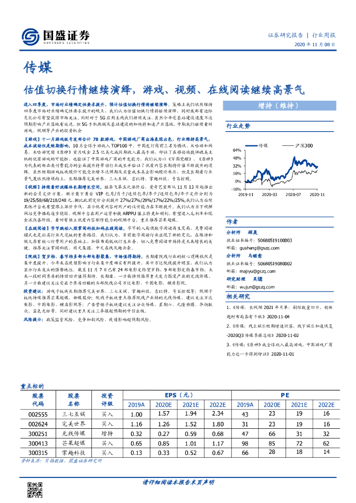 国盛证券:传媒行业周报:估值切换行情继续演绎,游戏、视频、在线阅读继续高景气.pdf