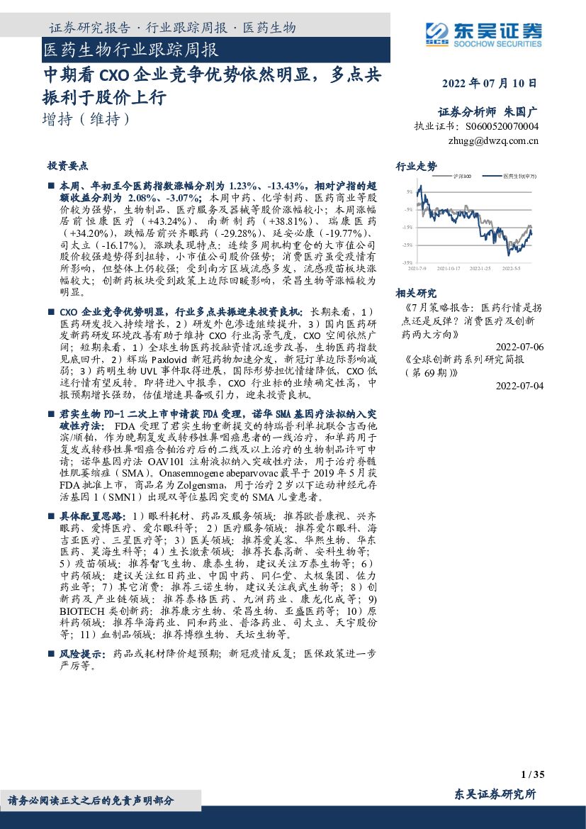 东吴证券:医药生物行业跟踪周报:中期看CXO企业竞争优势依然明显,多点共振利于股价上行.pdf