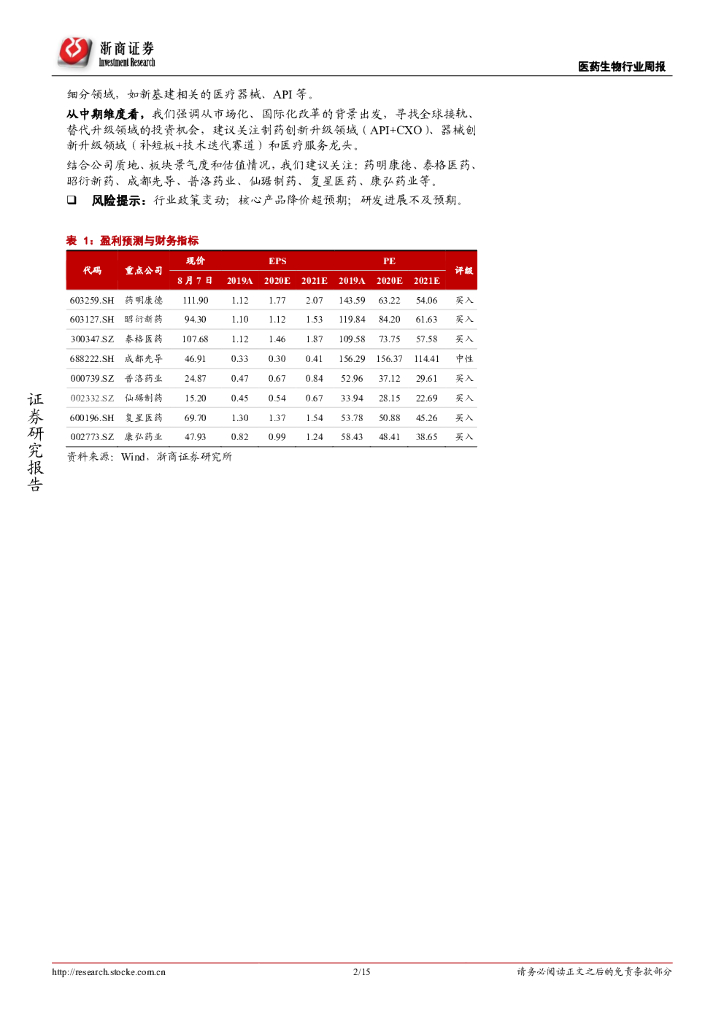 浙商证券:医药行业周报:持续推荐业绩确定性高CXO板块,关注疫苗板块进展.pdf