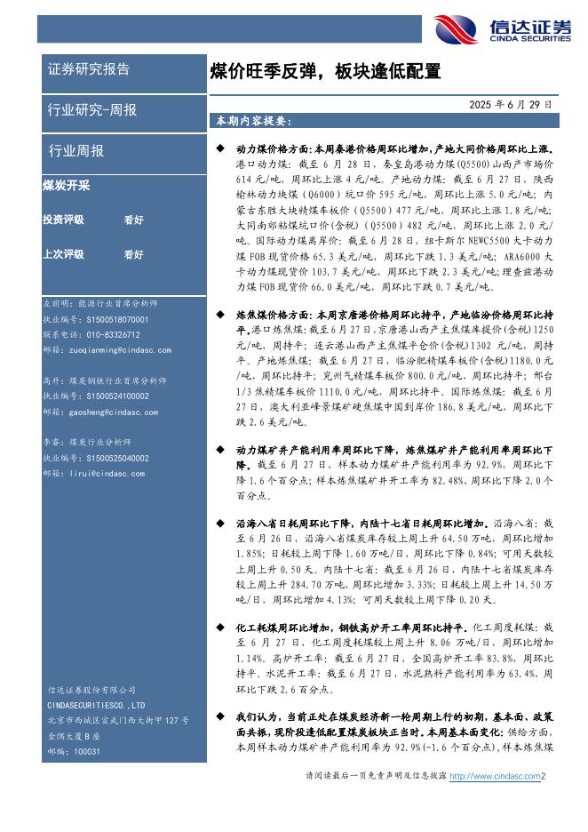 信达证券:煤价旺季反弹,板块逢低配置.pdf