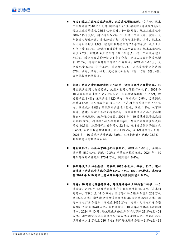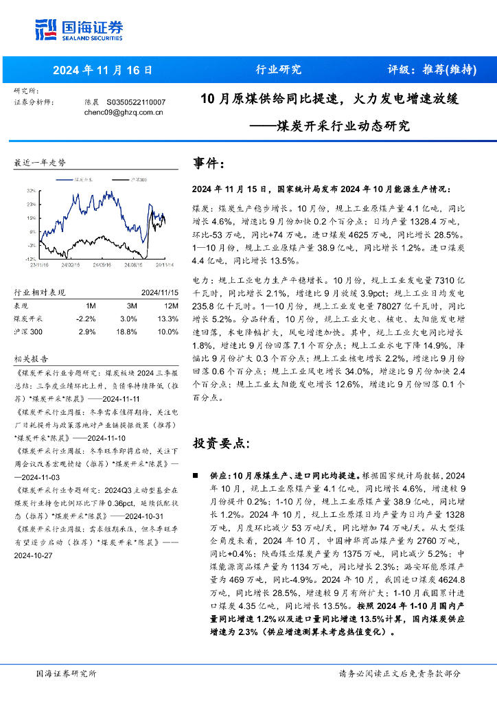国海证券:煤炭开采行业动态研究:10月原煤供给同比提速,火力发电增速放缓.pdf