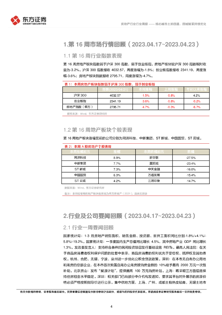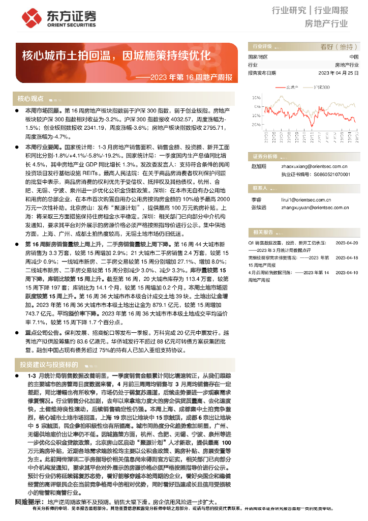东方证券:2023年第16周地产周报:核心城市土拍回温,因城施策持续优化.pdf
