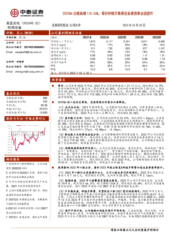 中泰证券:美亚光电(002690)-2022Q4业绩高增110.56%,看好种植牙降费设备渗透率加速提.pdf