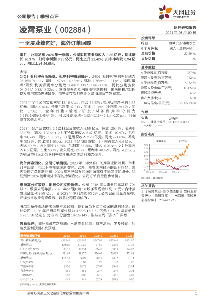 天风证券:凌霄泵业(002884)-一季度业绩向好,海外订单回暖.pdf