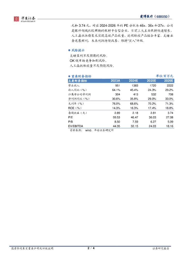华安证券:爱博医疗(688050)-业绩增长稳健,定增加码美瞳业务.pdf