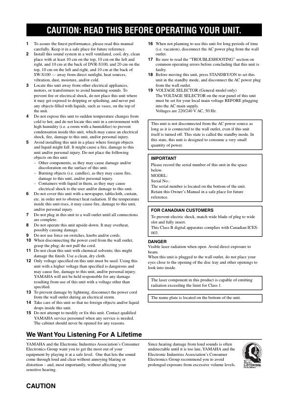 YAMAHA DVX-S100 DVD HOME THEATER SOUND SYSTEM 用户手册.pdf