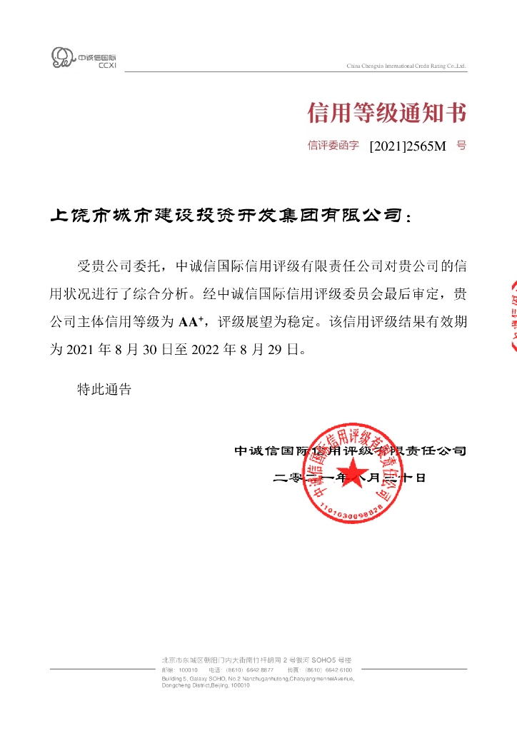 中诚信:上饶市城市建设投资开发集团有限公司主体信用评级报告及跟踪评级安排.pdf