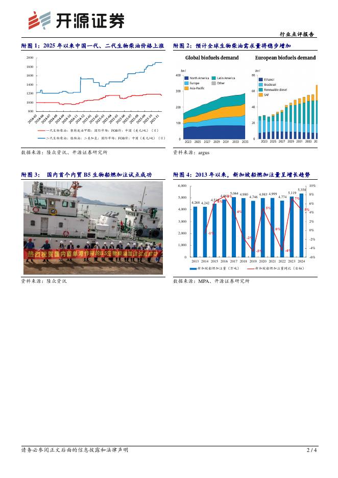 开源证券:基础化工行业点评报告:国内首单内贸B5生柴加注,生物船燃需求前景可期.pdf