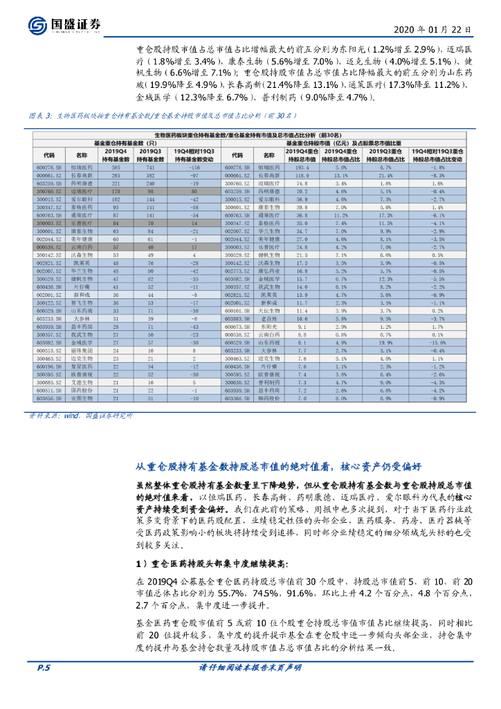 国盛证券:医药生物:2019Q4公募重仓医药持股占比下降,硬核资产仍受偏好.pdf