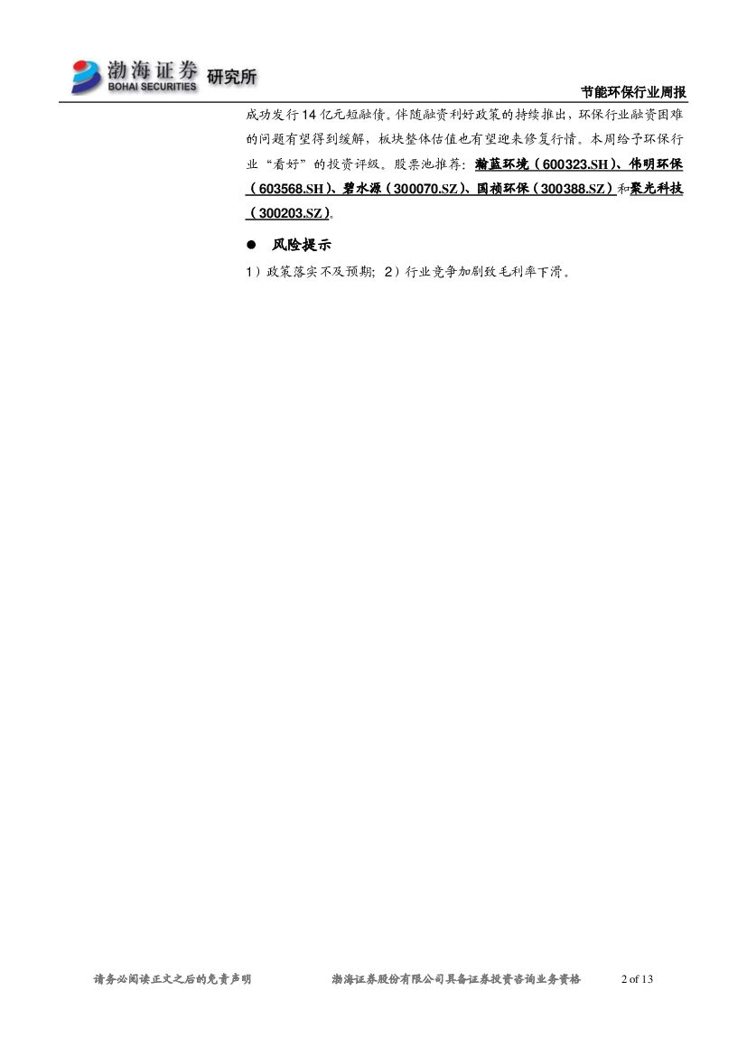 渤海证券:节能环保行业周报:关注融资环境改善带来的估值修复行情.pdf