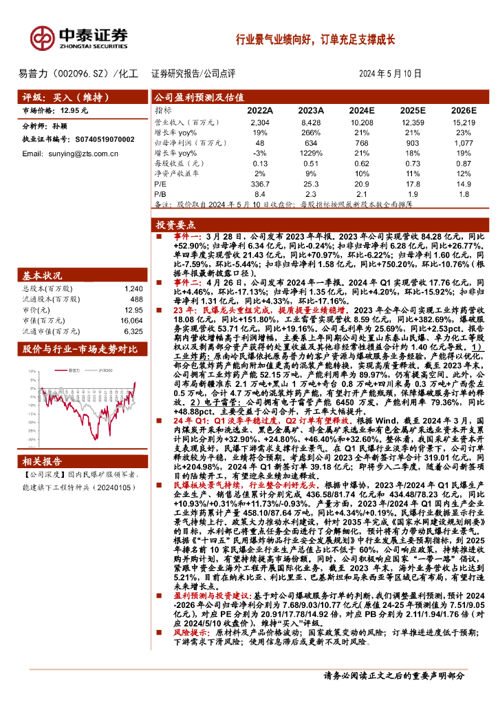 中泰证券:易普力(002096)-行业景气业绩向好,订单充足支撑成长.pdf