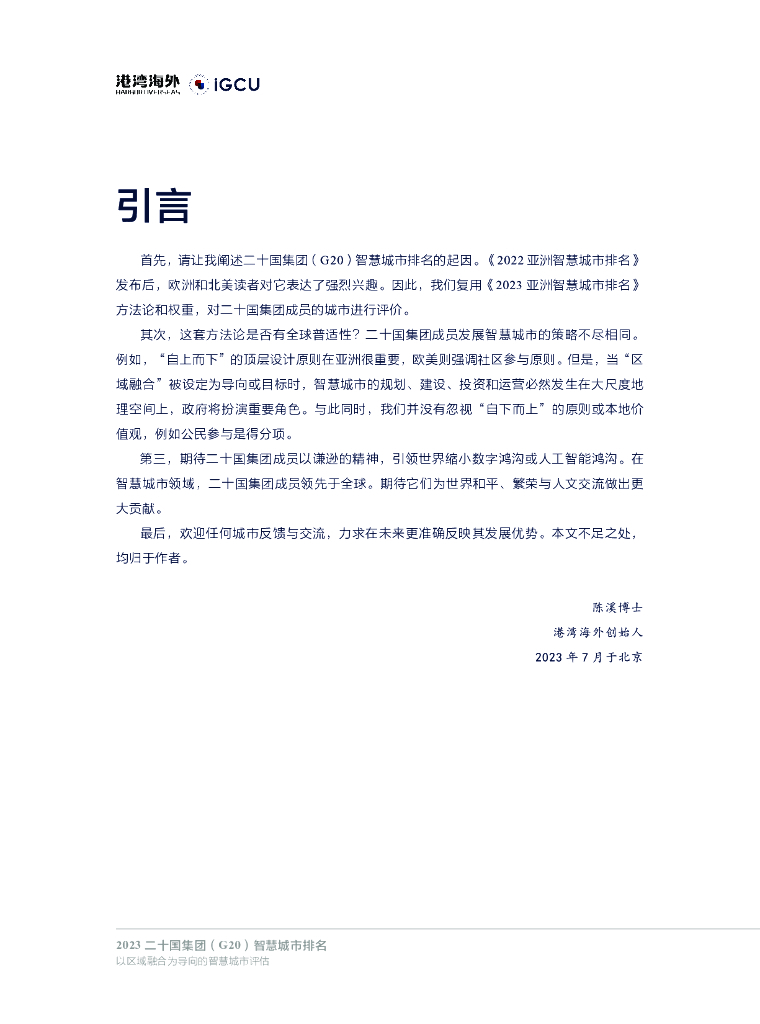 港湾海外&IGCU:2023二十国集团(G20)智慧城市排名报告.pdf