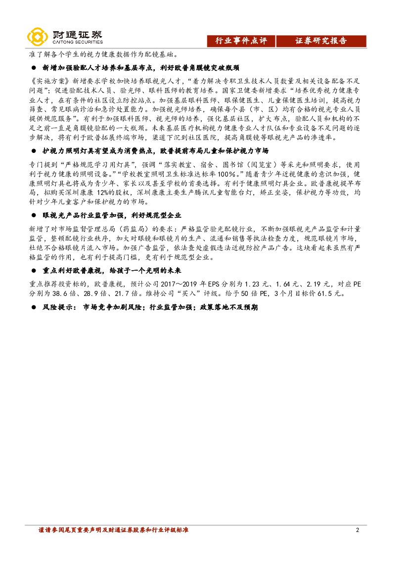 财通证券:儿童青少年近视防控《实施方案》发布点评:利好欧普康视,给孩子一个光明的未来.pdf