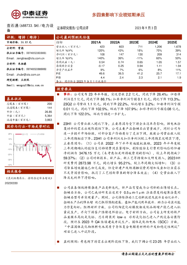 中泰证券:壹石通(688733)-多因素影响下业绩短期承压.pdf