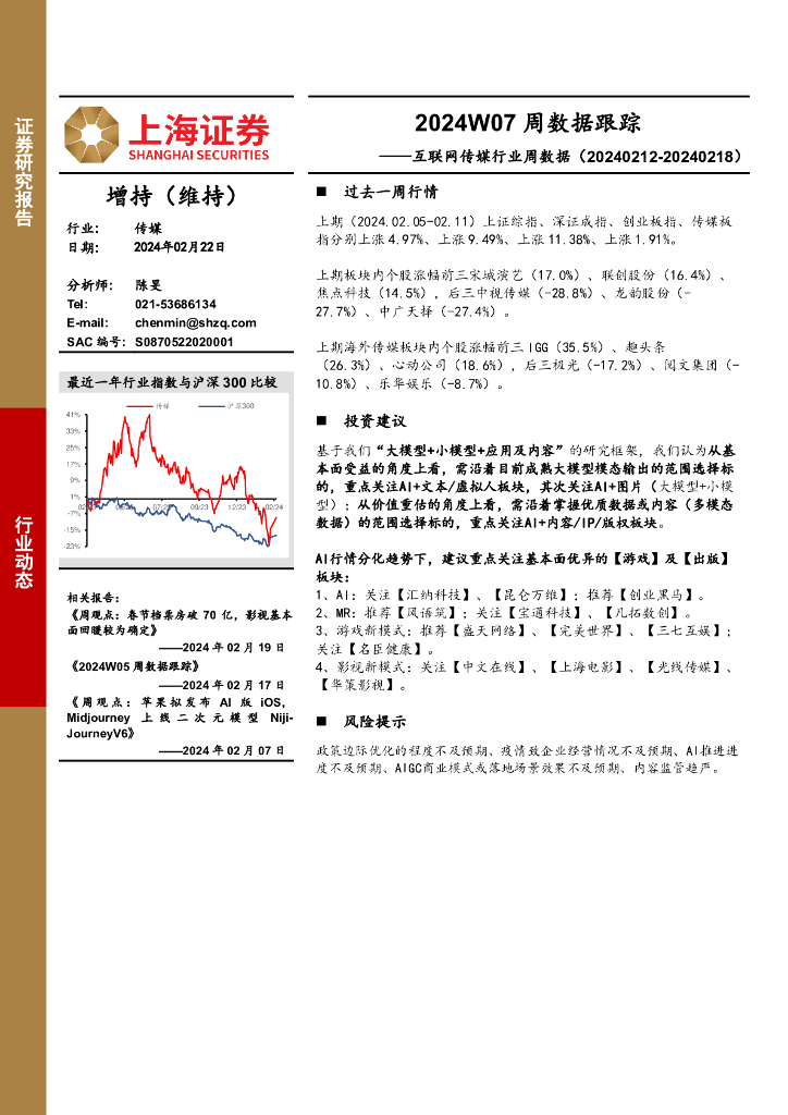 上海证券:互联网传媒行业周数据:2024W07周数据跟踪.pdf