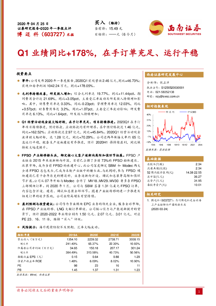 西南证券:博迈科(603727)-Q1业绩同比+178%,在手订单充足、运行平稳.pdf