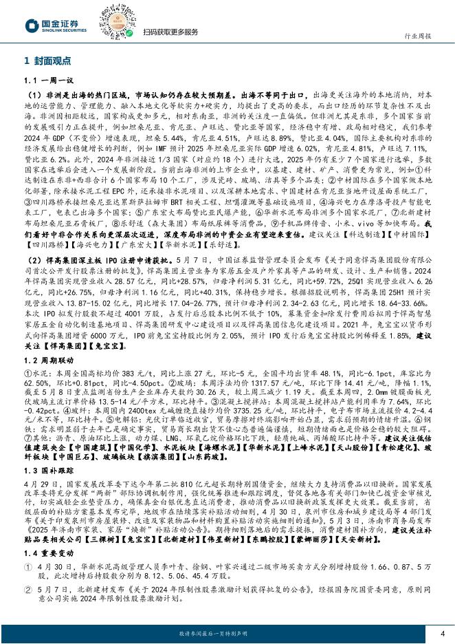 国金证券:非金属建材周观点:重视非洲出海预期差,关注悍高集团IPO获批.pdf