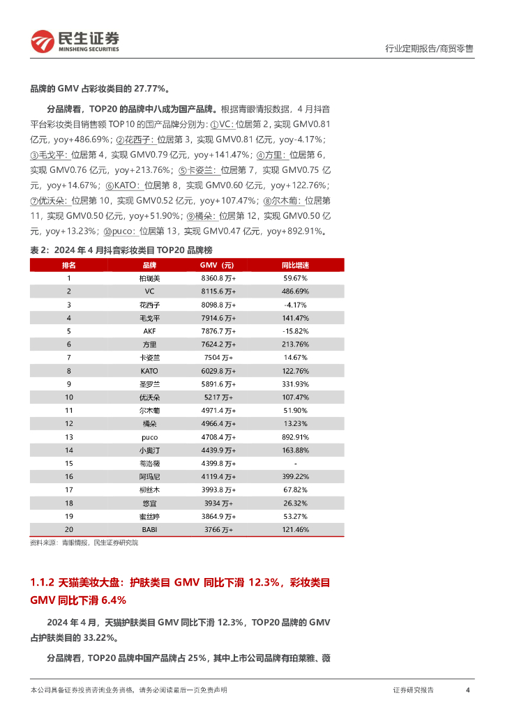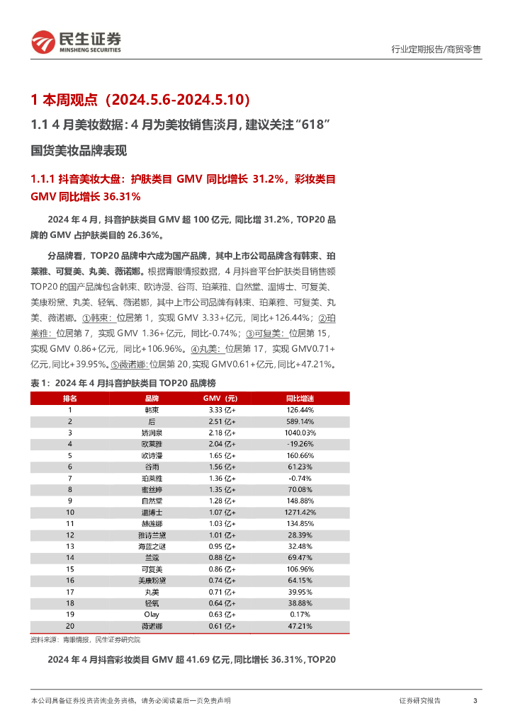 民生证券:零售周观点:4月为美妆销售淡月,建议关注“618”国货美妆品牌表现.pdf