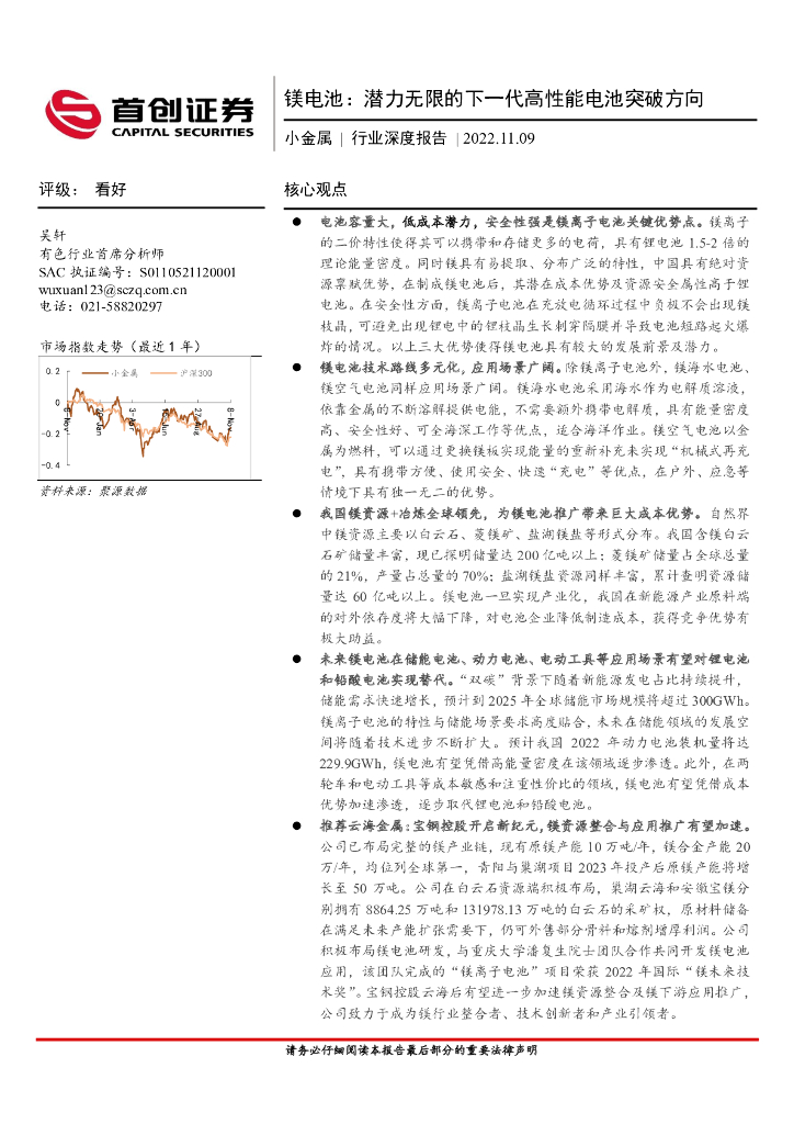 首创证券:小金属行业深度报告:镁电池:潜力无限的下一代高性能电池突破方向.pdf