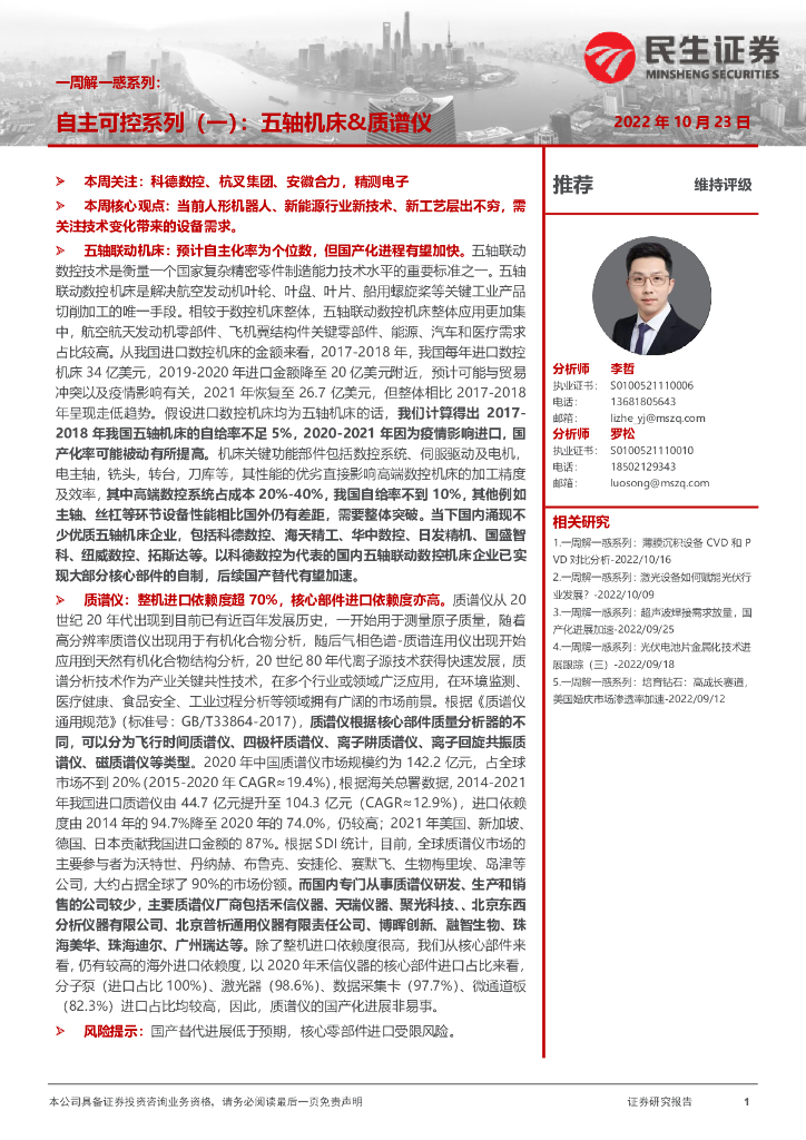 民生证券:机械:一周解一惑系列:自主可控系列(一):五轴机床&质谱仪.pdf