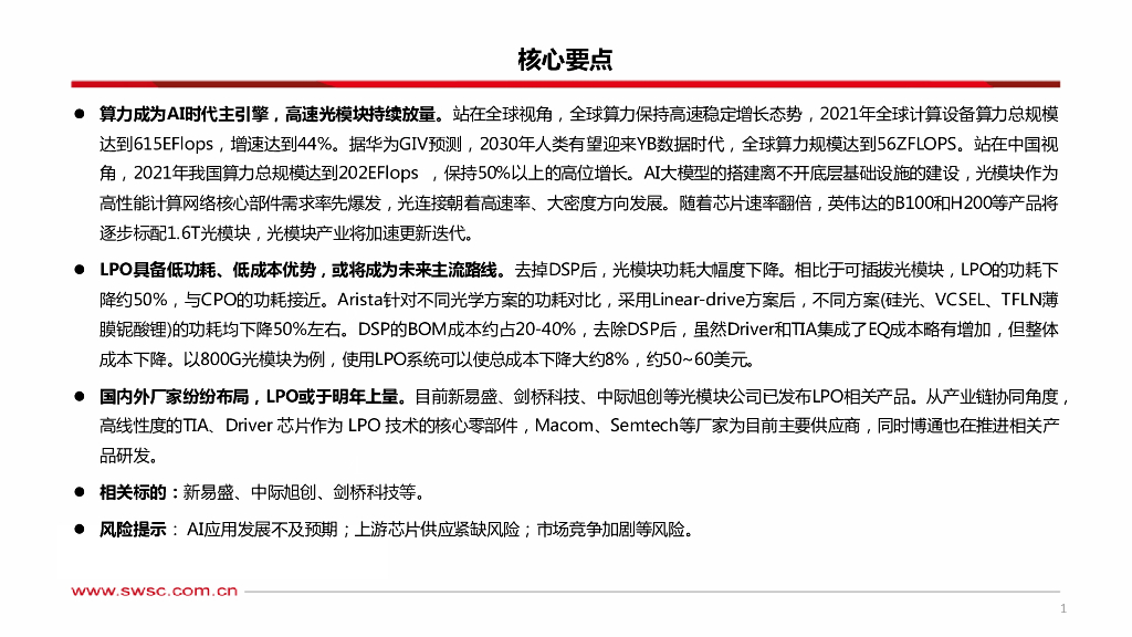 西南证券:人工智能专题研究:LPO光模块.pdf