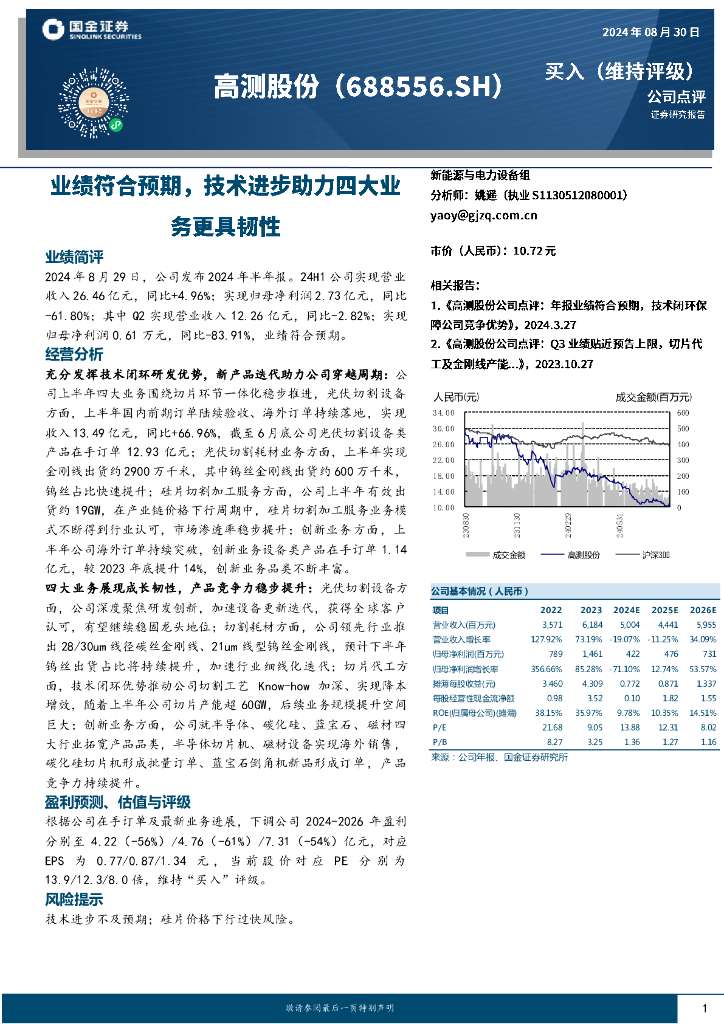 国金证券:高测股份(688556)-业绩符合预期,技术进步助力四大业务更具韧性.pdf