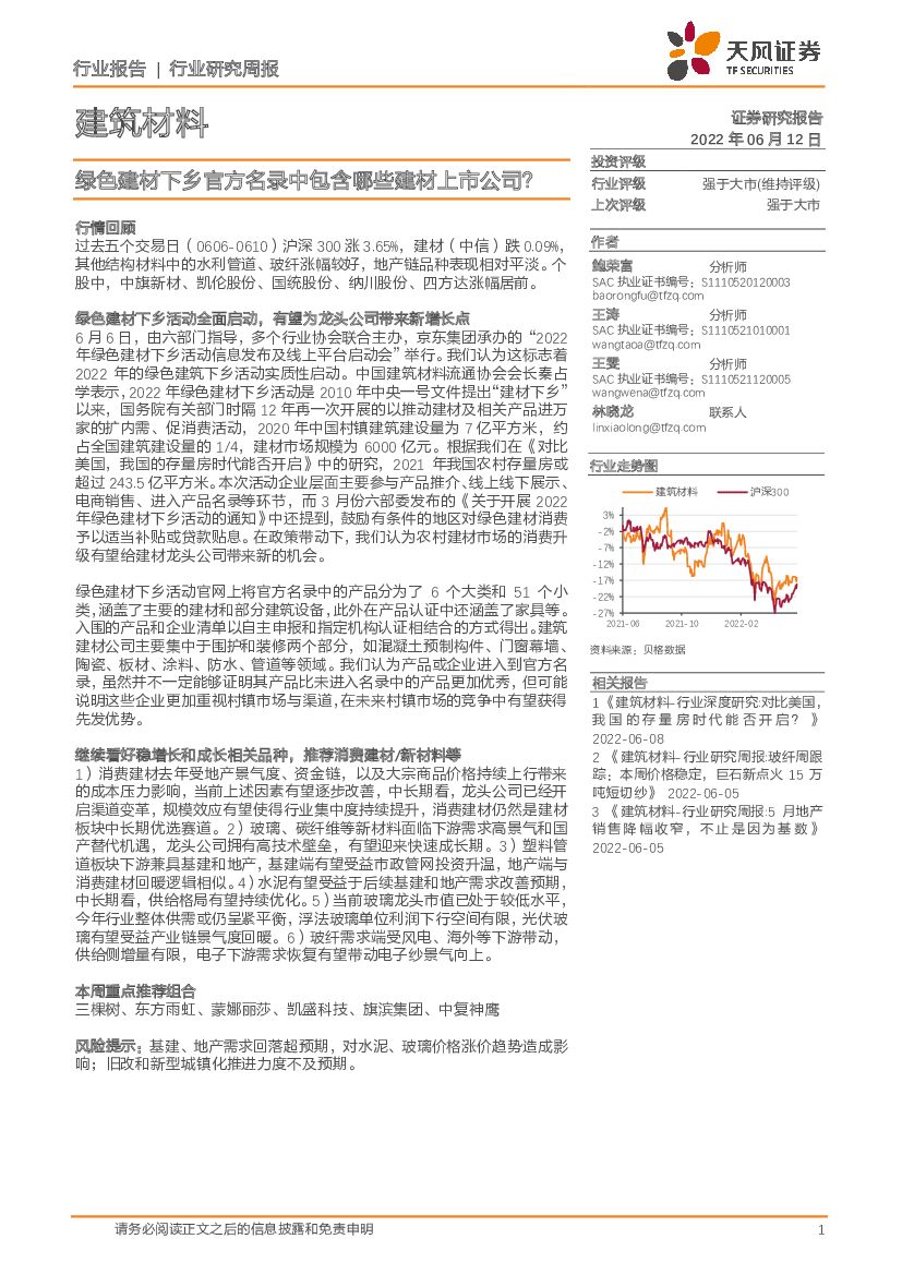 天风证券:建筑材料行业研究周报:绿色建材下乡官方名录中包含哪些建材上市公司?.pdf
