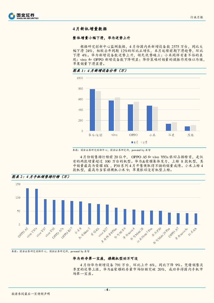 国金证券:中国智能手机市场四月数据分析:华为终夺第一,产业链迎来投资机遇.pdf