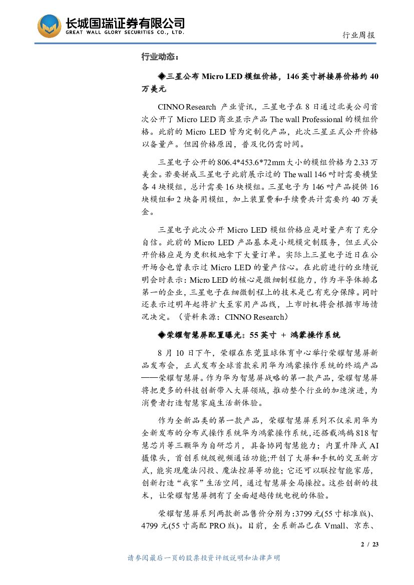 长城国瑞证券:电子行业双周报2019年第16期(总第16期):华为发布鸿蒙操作系统,三星公布MicroLED模组价格.pdf
